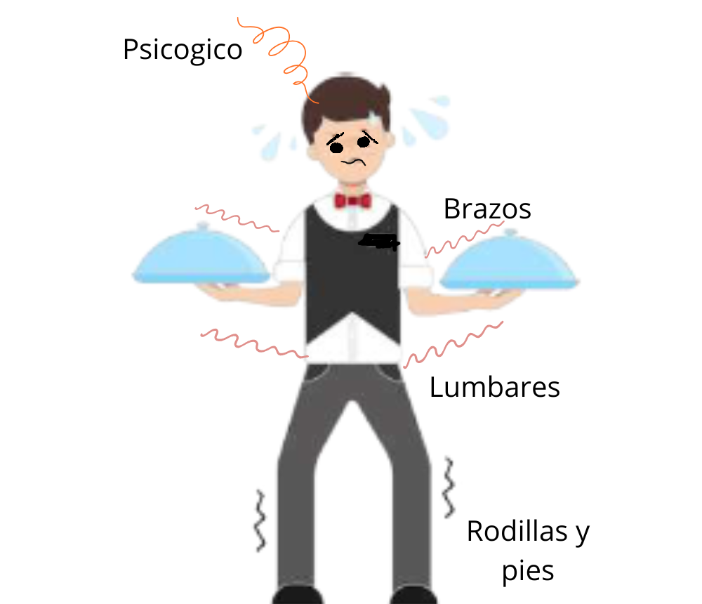 - Psicológico: Estrés por la presión del servicio, rapidez, trato con clientes y multitarea.